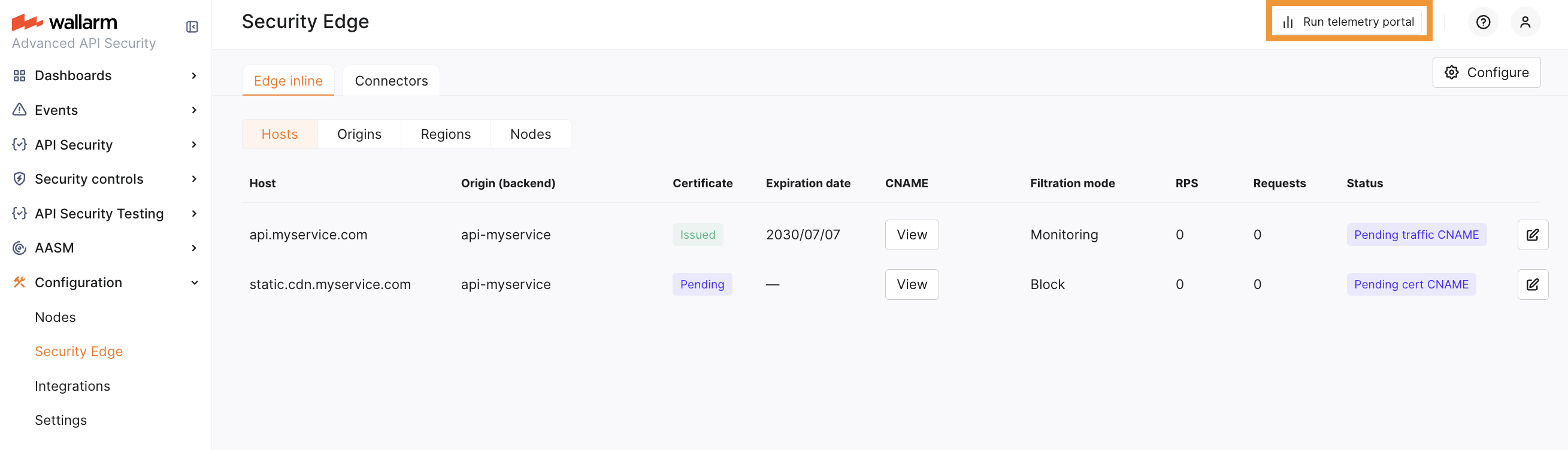 Run telemetry portal once the Node reaches the Active status. It becomes accessible via a direct link from the Security Edge section ~5 minutes after initiation.